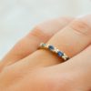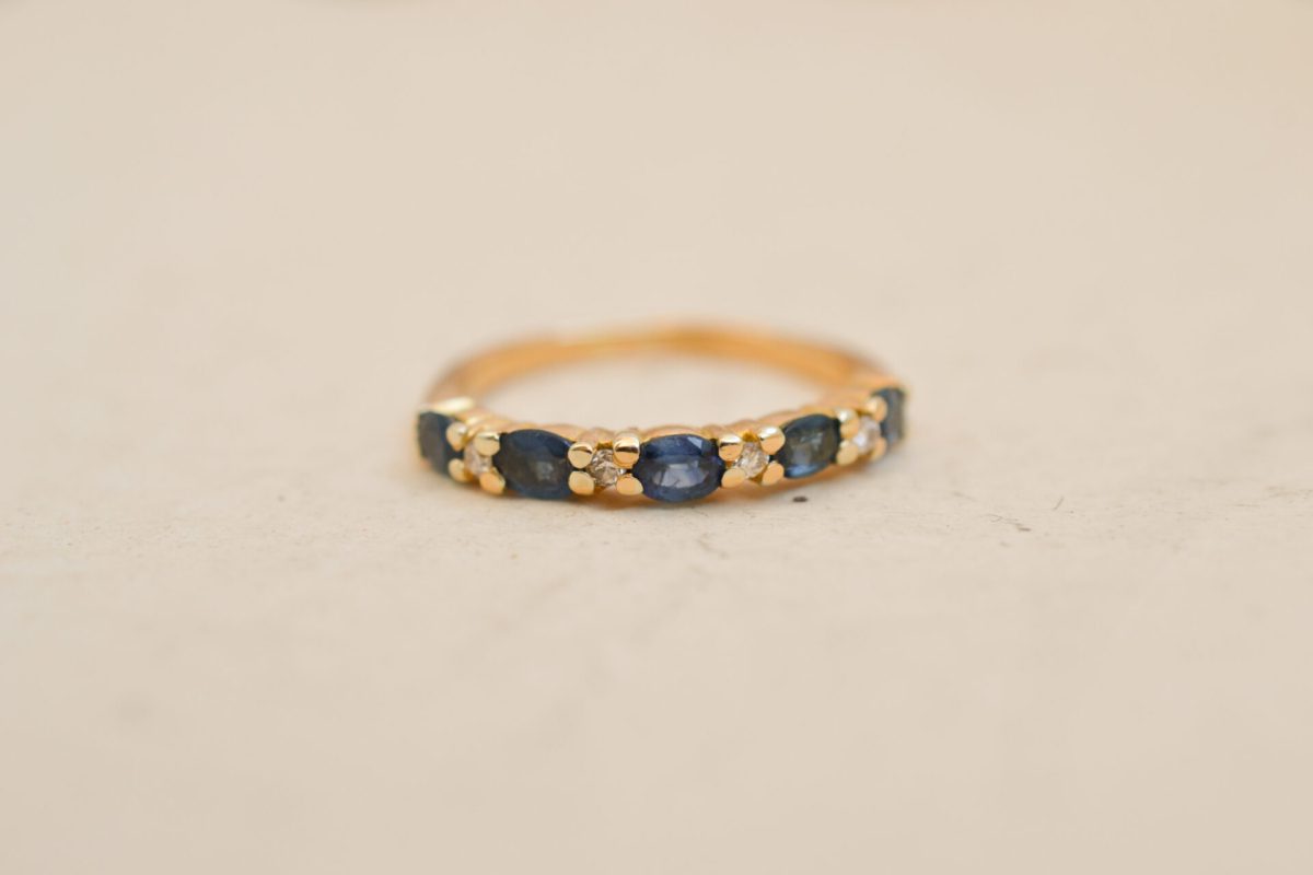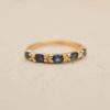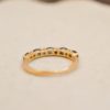Le mot de Noir Carat : Cette alliance demi-américaine est une bague ancienne intemporelle, élégante et somptueuse. Les Saphirs et les Diamants qui la sertissent se complètent à la perfection pour la mettre en valeur. Les Diamants sont retenus par des griffes en Or jaune qui n’enlèvent en rien leur éclat. Cela forme de petites fleurs, rendant ainsi cette bague féminine et délicate. Ils apportent également de la lumière et du scintillement aux Saphirs qui les entourent. C’est une magnifique bague de mariage qui s’accordera avec d’autres modèles de bagues Vintage, sans faute de goût.