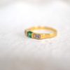 Alliance en Or jaune 18 carats sertie d’une Émeraude centrale épaulée par 4 Diamants.