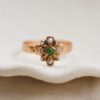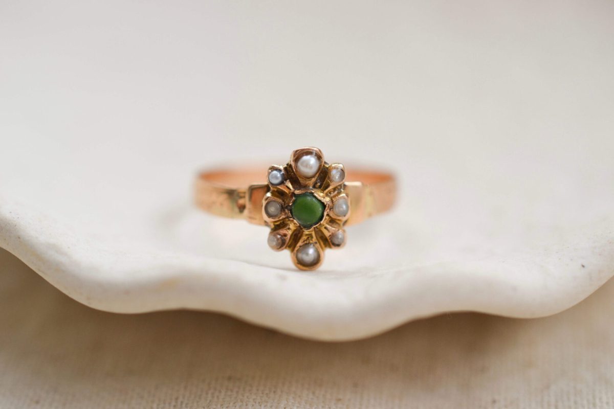 Bague typique Art nouveau Or rose Pierre verte et Perles