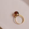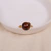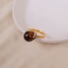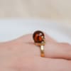 Bague en Or jaune 18 carats ornée d’une boule d’Ambre soutenue par une tige finement perforée.