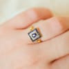 Le mot de Noir Carat : Cette bague ancienne est charmante, élégante et intemporelle. Sa forme carrée sur une monture ajourée par des noeuds subliment les Saphirs en les mettant en valeur avec modernité et raffinement. L’intensité des pierres précieuses et l’éclat du pavage en Or blanc contrastent avec style rendant cette bague Vintage magnifique.