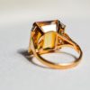 Pour aller plus loin : Ce bijou appartient à la catégorie fascinante des « bagues cocktail », nées durant les années 1920 aux États-Unis. En effet, ces pièces imposantes permettaient aux femmes d’afficher leur indépendance lors des soirées mondaines. La citrine, avec sa couleur dorée, symbolise historiquement la joie, la prospérité et l’énergie vitale. D’autre part, l’association de l’Or jaune et du platine est une signature de haute qualité. Le poinçon hibou ainsi que le mascaron garantissent ici un titrage en Or 750/1000 et en platine pour le marché français. Cette bague traverse les époques sans perdre son caractère spectaculaire. Elle constitue ainsi une pièce maîtresse pour sublimer une tenue de soirée.
