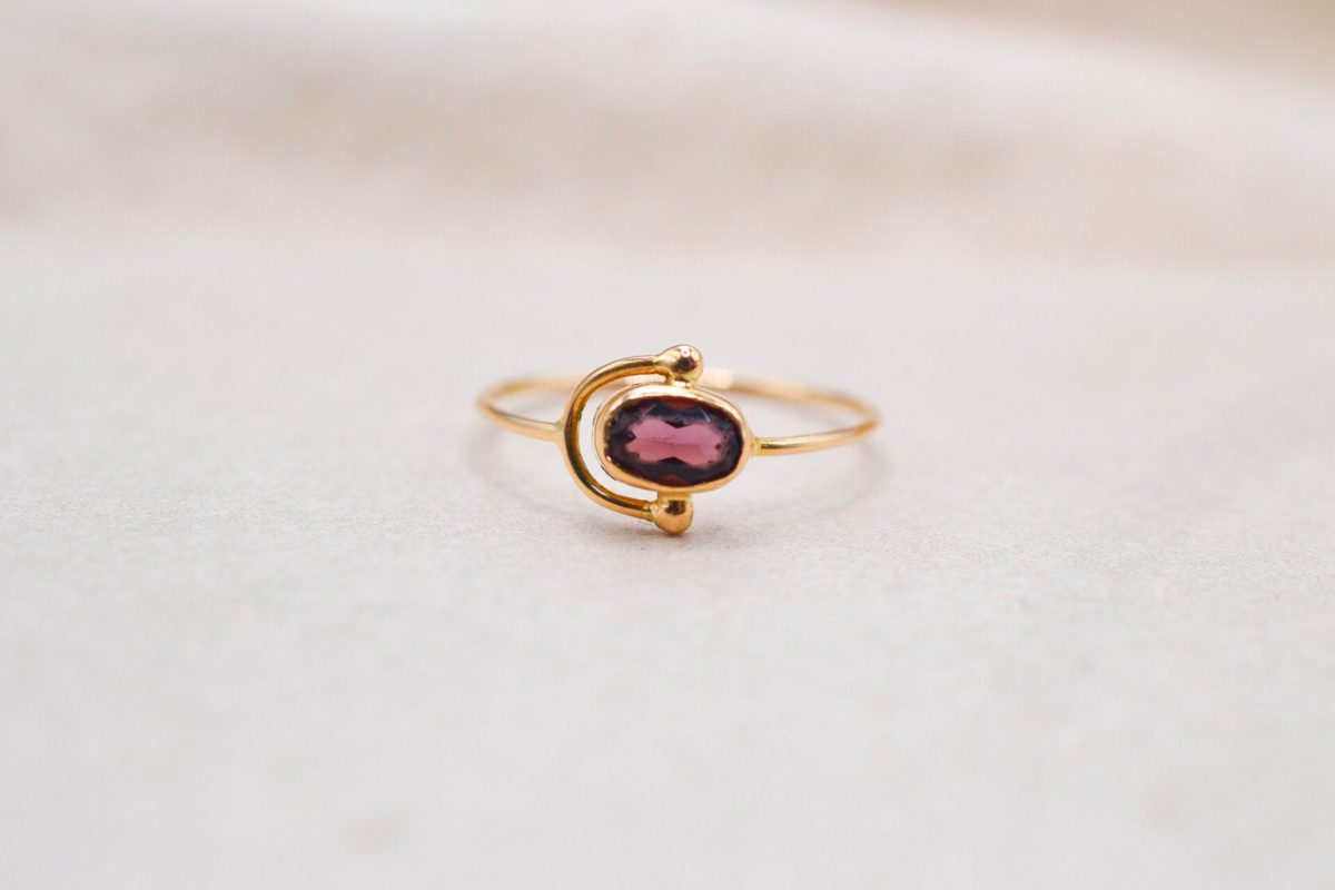 Bague étrier en Or jaune 18 Carats, ornée d’une Améthyste ovale