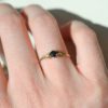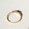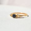 Bague en Or jaune ornée d’un saphir épaulé de deux oxydes.
