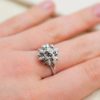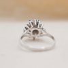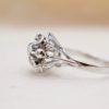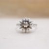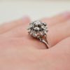 Bague florale Or blanc Diamants centrée d’un diamant en serti clos dans un entourage à motif de fleur orné de 6 petits diamants.
