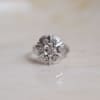 Le mot de Noir Carat : Cette superbe bague ancienne est éclatante, unique et élégante. Sa forme style Marguerite lui apporte le charme de la bague de fiançailles Vintage par excellence. Le décor ciselé met en valeur les Diamants avec subtilité. Enfin, le corps de bague rainuré se marie à la perfection avec la monture ajourée qui donne sophistication et raffinement à cette bague Vintage.