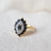 Le mot de Noir Carat : La bague Marquise est une élégante bague ancienne inspirée du sourire de la Marquise de Pompadour, favorite du roi Louis XV. Aussi appelée bague Navette, cette pépite est mise en valeur par des Saphirs à la couleur intense et intemporelle. Elle est aussi sublimée par le pavage d’Or blanc et de Diamants qui rappelle le sourire éclatant et rayonnant de la Maquise de Pompadour.