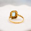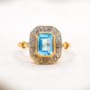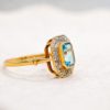 Pour aller plus loin : Le design de cette bague s’inspire des codes de l’Art Déco. À cette époque, la taille rectangulaire dite « émeraude » incarnait une élégance moderne et architecturale. Contrairement aux tailles rondes, elle privilégie la transparence plutôt que le feu. Elle met donc en valeur la limpidité naturelle de la topaze. D’ailleurs, la topaze est appréciée depuis l’Antiquité pour sa clarté et son éclat. Selon les traditions, elle symbolise la force intérieure et la protection. En joaillerie, on recherche sa brillance nette et sa capacité à capter la lumière avec précision. Associée aux diamants et à l’Or 18 carats, elle prend ici une dimension plus précieuse encore.