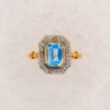 Le mot de Noir Carat : Laissez-vous transporter par la clarté cristalline de cette bague Vintage d’une distinction rare. Dès le premier regard, elle séduit par son équilibre et sa lumière. Au centre, une topaze taille émeraude révèle un bleu limpide et lumineux. Sa forme rectangulaire structure la composition et souligne la pureté de la pierre. Ainsi, chaque mouvement de la main fait vibrer ses reflets transparents. Autour de la gemme, un plateau octogonal en Or 2 tons affirme une architecture élégante. De plus, un entourage de diamants taille rose diffuse un éclat subtil et légèrement mystérieux. Ce contraste renforce le charme des bijoux d’époque. Cette bague s’adresse à celles qui recherchent une pièce singulière, lumineuse et pleine de caractère.