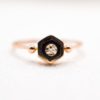 Bague hexagonale en Or jaune ornée d’une plaque d’Onyx sertie d’un Diamant.