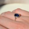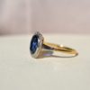Pour aller plus loin : Ce bijou s’inspire du style des bagues marquises ou entourages, très populaires dès le XIXe siècle. Il modernise cependant le concept par des lignes plus épurées, typiques du milieu du XXe siècle. L’utilisation du saphir synthétique « Verneuil » est ici un point clé de son histoire. Ce procédé, mis au point en 1902, permit de démocratiser le luxe des pierres précieuses. Les joailliers l’utilisaient parfois pour sa pureté parfaite, même dans des montures d’Or et de platine. Par ailleurs, le poinçon tête d’aigle garantit une fabrication française en Or 750/1000. Enfin, cette technique d’entourage permet de donner plus de prestance à la pierre centrale. Elle crée ainsi une structure joaillière à la fois cohérente et élégante.