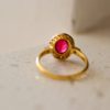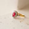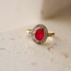 Bague ovale en Or jaune et blanc 18 Carats ornée d’un Doublet grenat verre et d’un halo de diamants