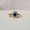 Bague ovale en Or deux tons sertie d’un saphir dans un entourage de diamants.