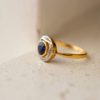 Bague ovale 2 Ors, jaune et blanc 18 Carats ornée de Saphirs et Diamants