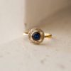 Le mot de Noir Carat: Cette bague en or 18 carats séduit par son élégante monture bicolore. L’anneau, fin et délicat, s’évase légèrement à l’approche de la tête de bague. En effet, au cœur de la composition, un saphir bleu, de forme ronde ou légèrement ovale, est serti clos dans un écrin d’or jaune. Ce type de sertissage assure à la fois protection et intensité visuelle. Ce dernier est délicatement orné de diamants taille rose ou 8/8, sertis avec une finition millegrain, caractérisée par de fines perles de métal qui captent et diffusent la lumière avec raffinement.