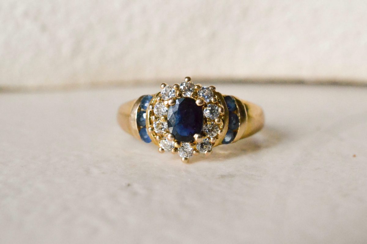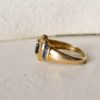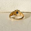 Pour aller plus loin: Cette bague combine deux styles emblématiques de la joaillerie : la marguerite, symbole intemporel d’élégance florale. Également le jonc, anneau large traditionnellement associé à l’idée d’éternité et de continuité. Ce type de création apparaît fréquemment dans la bijouterie de la fin du XXᵉ siècle, période où les joailliers développent des pièces plus affirmées et faciles à porter au quotidien. Le saphir, pierre associée depuis l’Antiquité à la fidélité et à la noblesse, renforce la symbolique de cette bague. La présence de plusieurs saphirs le long de la monture crée un véritable ruban de bleu autour du doigt, évoquant protection et constance.