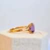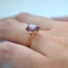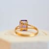 Bague Solitaire en Or jaune 18 carats, ornée d’une Améthyste de taille émeraude, montée en serti griffes.