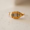 Pour aller plus loin: Le style Tank apparaît dans un contexte historique marqué par la Seconde Guerre mondiale. Face à la rareté des pierres précieuses et du platine, les joailliers privilégient l’Or jaune et jouent sur les volumes pour créer des bijoux imposants et expressifs. Inspirées par l’architecture industrielle et les formes mécaniques, ces créations adoptent des lignes droites, des motifs répétitifs et une symétrie rigoureuse. Le contraste entre l’Or jaune et l’Or blanc devient également une signature forte de cette période. Par ailleurs, ces bagues symbolisent une évolution de la féminité. Plus affirmées, plus structurées, elles accompagnent une époque où les femmes revendiquent une place nouvelle dans la société.