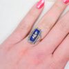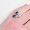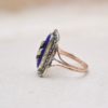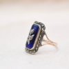 Bague Victorienne rectangulaire en Or rose 18 Carats et Argent ornée d’une plaque d’émail bleu ainsi que de Marcassites.