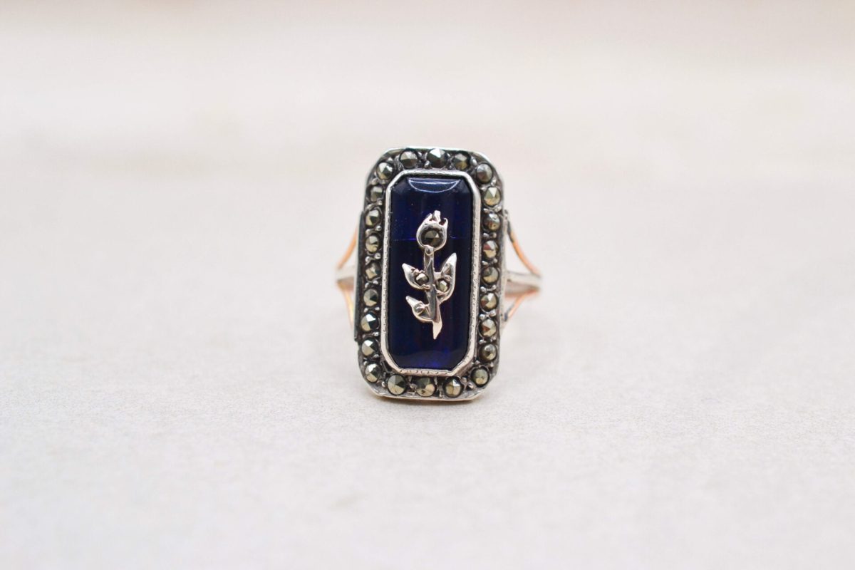 Pour aller plus loin: Cette bague s’inscrit dans la grande tradition des bijoux de sentiment de l’époque victorienne, où chaque élément possédait une signification. Les marcassites, utilisées ici en entourage, constituaient une alternative élégante aux diamants. Leur éclat plus doux et légèrement sombre correspondait parfaitement à l’esthétique romantique de l’époque, notamment pour les bijoux portés en soirée ou dans des contextes plus intimes. Enfin, le motif floral central s’inscrit dans le langage symbolique très développé de l’époque victorienne. Une fleur isolée pouvait exprimer un sentiment discret, un souvenir ou un attachement profond.