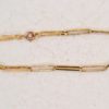 Le mot de Noir Carat : Ce bracelet séduit par ses maillons étirés et épurés, inspirés de la silhouette d’un trombone. Son design minimaliste affirme pourtant une vraie force graphique. De plus, l’aspect légèrement irrégulier de l’Or révèle un bijou Vintage qui a du vécu. Cette maille se suffit à elle-même pour créer un look moderne et aéré.
