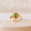 Pour aller plus loin : La bague Marguerite est un grand classique de la joaillerie, symbole de fraîcheur, de féminité et d’élégance intemporelle. En effet, très populaire au XXe siècle, elle s’inspire de la nature. Et plus précisément de la fleur éponyme, en évoquant à la fois délicatesse et harmonie. Cette version se distingue par le choix original de la Calcédoine verte. Effectivement, c’est une pierre fine peu courante en bijouterie contemporaine. Cependant, elle est très appréciée pour sa douceur visuelle et sa teinte apaisante.