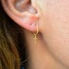 Paire de mini créoles en Or jaune retenant chacune une croix-pendentif.