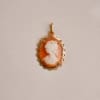 Pendentif en Or jaune 18 carats orné d’un Camée sur coquillage dans un décor de coeurs.
