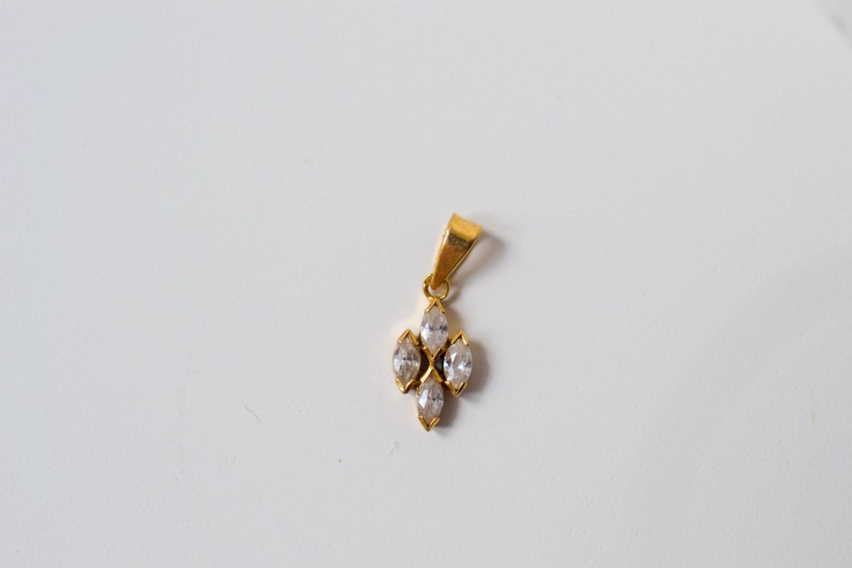 Pendentif losange en Or jaune 18 Carats ornée de 4 Oxydes taille navette.