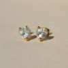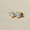 Paire de puces d’oreilles en or jaune 18 carats ornées d’Aigues-marines en forme de coeur.