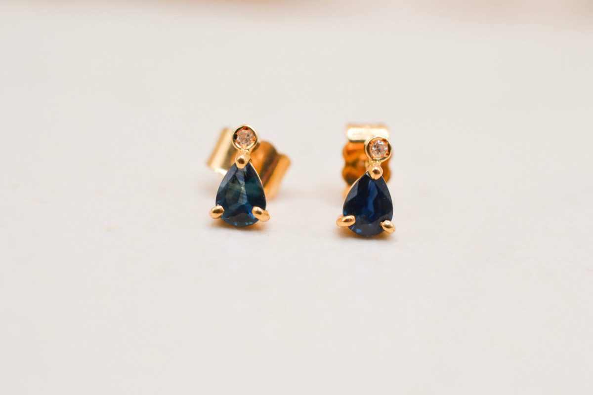 Accueil / Toutes les pépites / Earrings / Puces Saphir poire et Diamant
